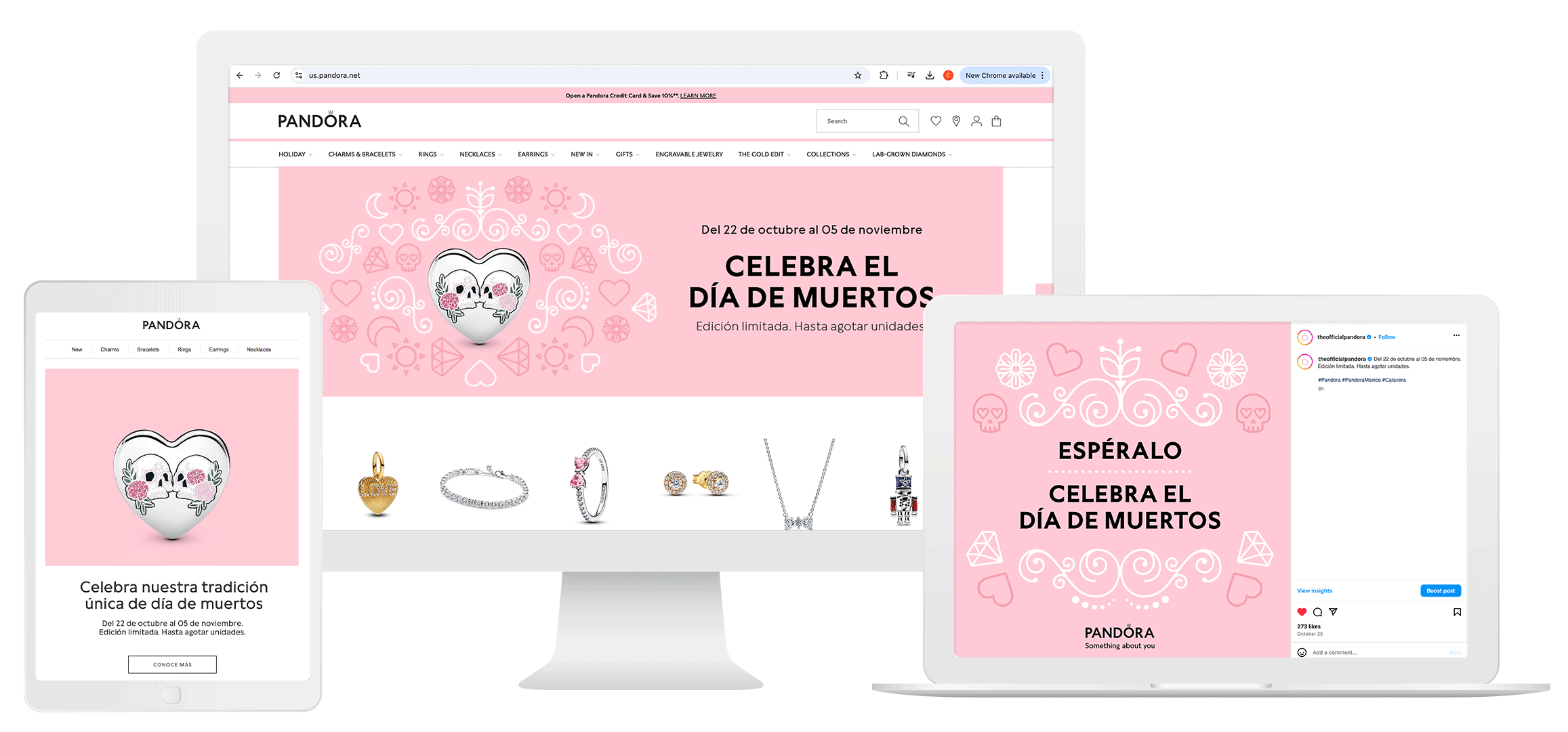 A vibrant visual concept created for Pandora’s Calavera event in the Brazilian market. The design was inspired by the symbolic elements of Calavera, crafted to complement and enhance Pandora’s Calavera charm. The campaign included animated assets that brought the festive spirit to life,